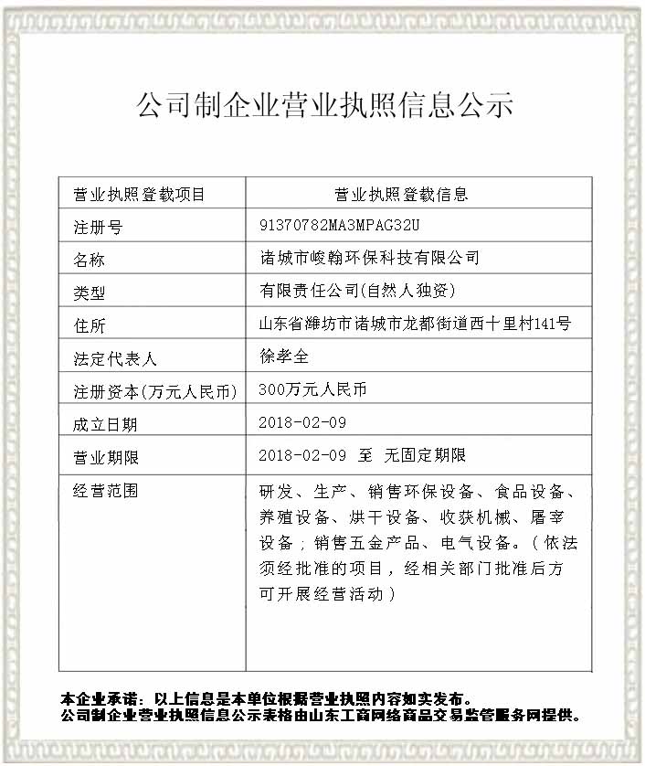 ZHUCHENG JUNHAN ENVIRONMENTAL PROTECTION TECHNOLOGY CO. LTD